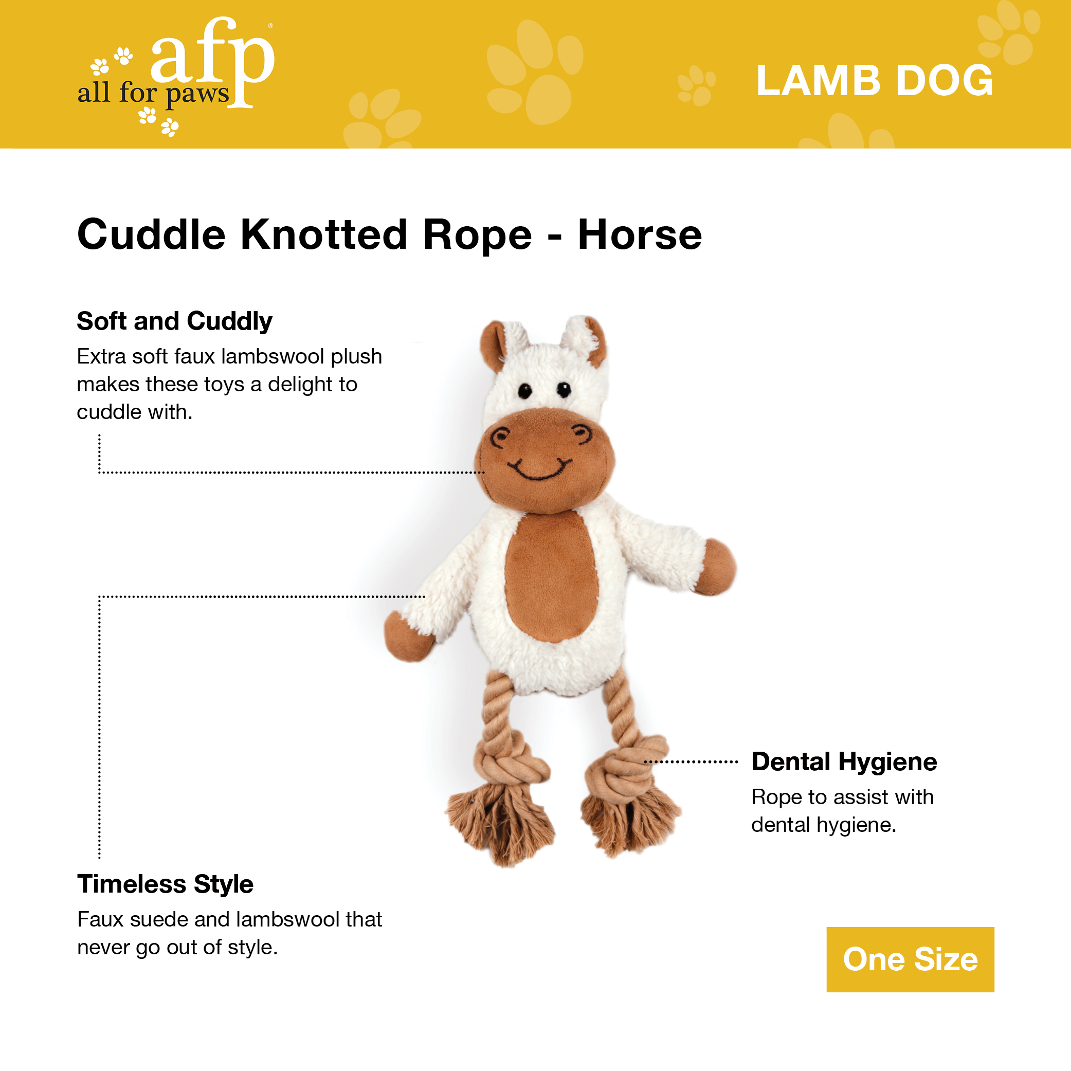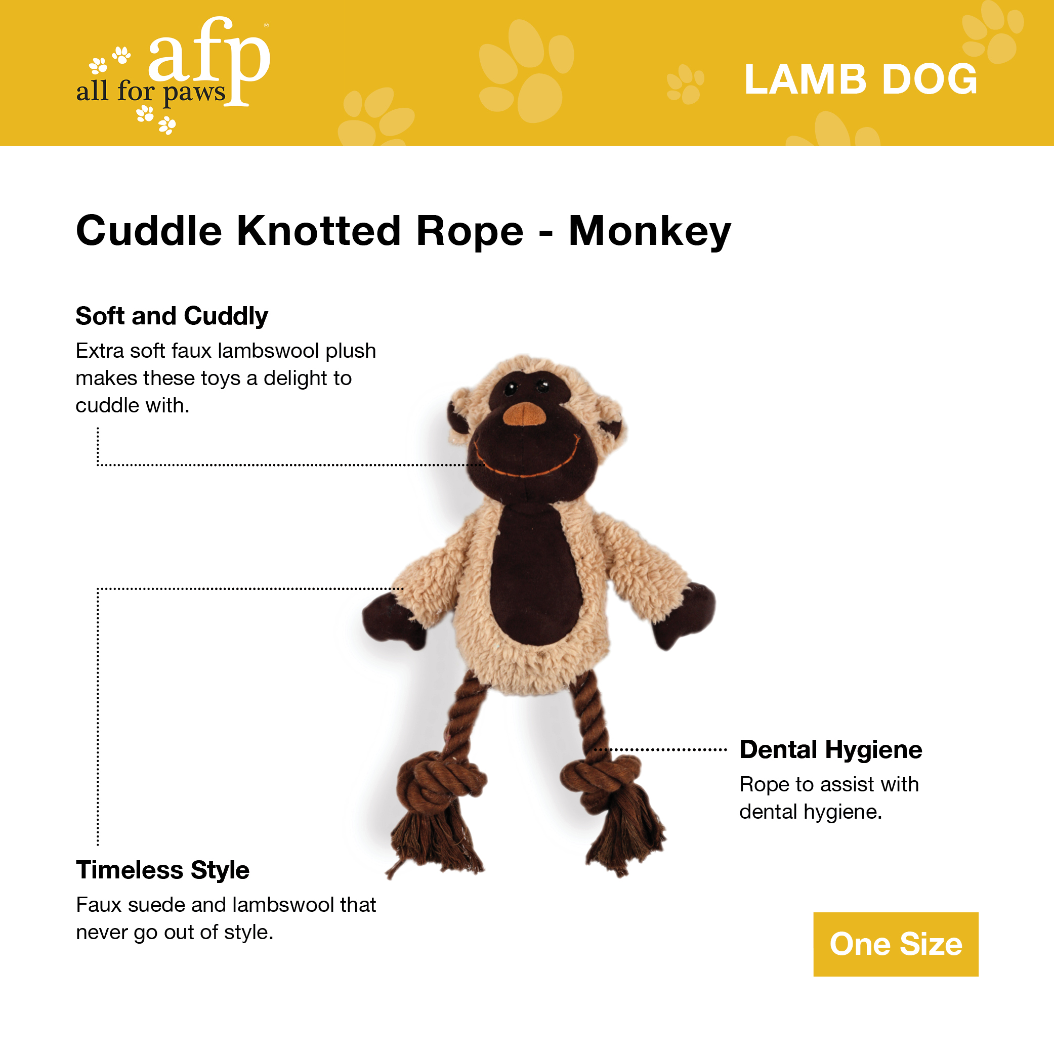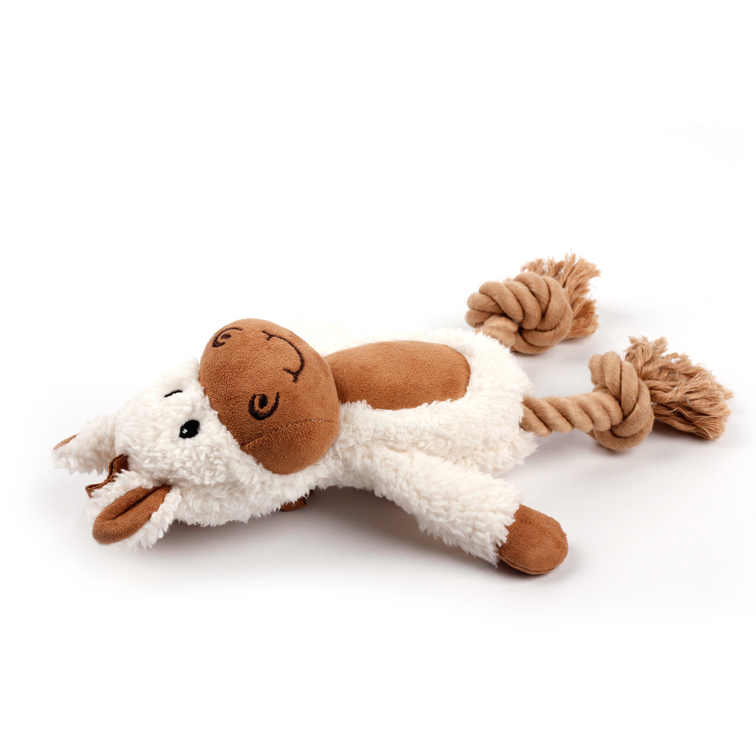 These lambs wool inspired knotted plush toys each have their own cute character. The rope pieces allow for play between humans and dogs aswell as between dogs themselves.