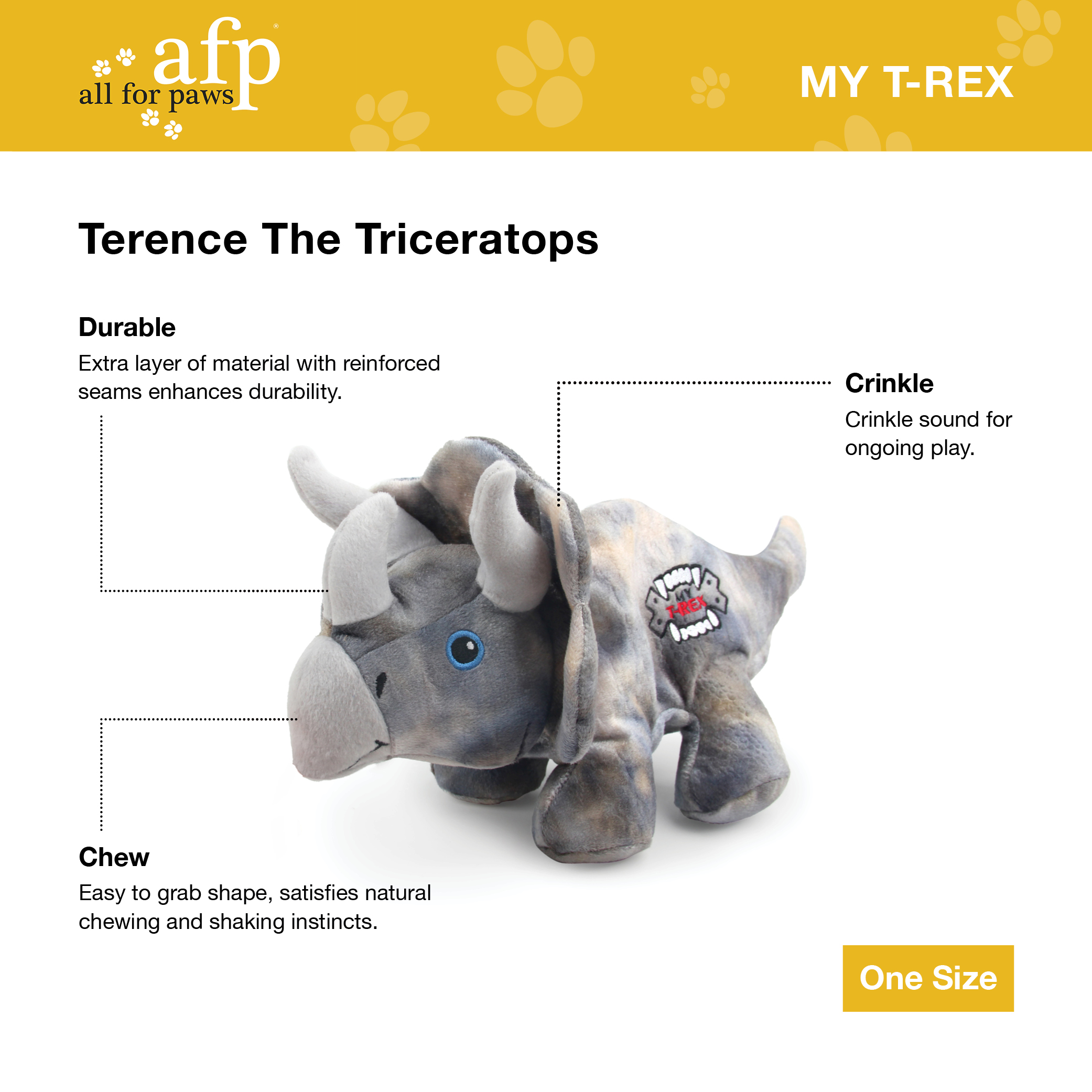 The Triceratops range is extra durable to give your dog extended enjoyment. The minimal stuffing, reinforced seams and extra layers of material ensure your dog can shake and play to their hearts content. This toy also has a crinkle sound for ongoing play.
